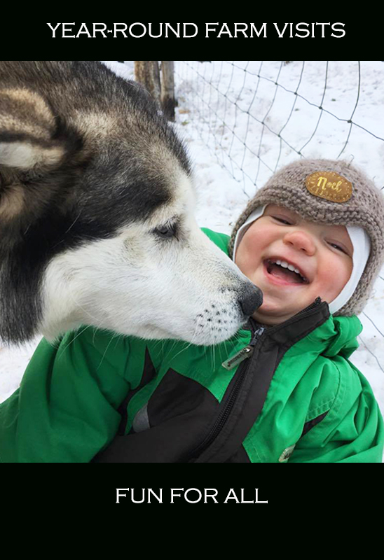 | Farm Products | 40min Farm Tours | Puppy Agility/ GEE HAW Maze | Evening Feeding Challenge | Short Husky Hikes |