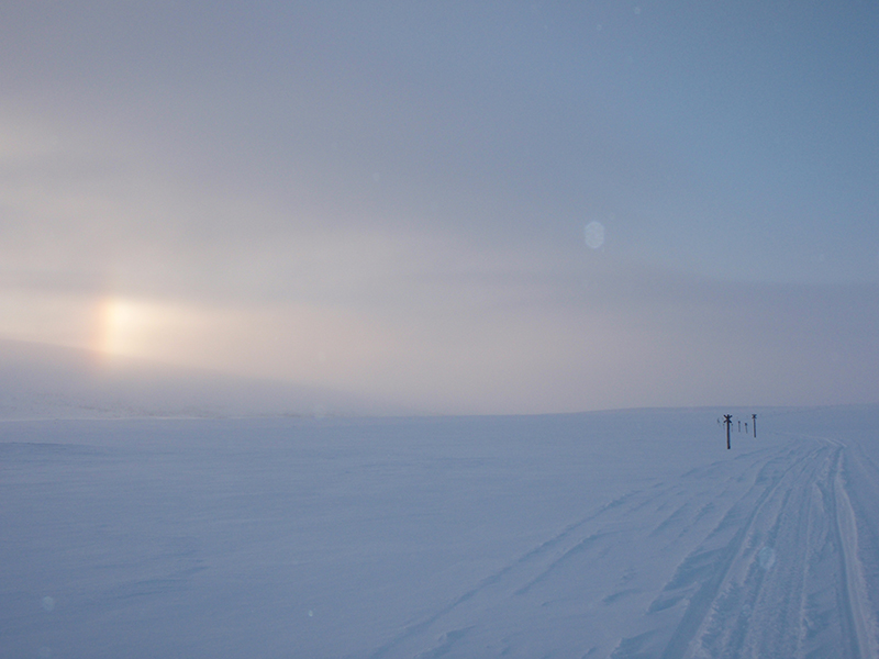 Wenn Sie mit dem Schneemobil unterwegs sind, können Sie in diesem nördlichen Breiten in relativ kurzer Zeit vergleichsweise große Strecken zurücklegen. Das bedeutet, dass sie in kürzester Zeit eine Vielzahl an verschiedenen Landschaften durchqueren können. Enontekio liegt nördlich der Fichtenholz-Grenze und am nördlichen Ende der Kiefer-Grenze. Nördlich von Hetta verschwinden die Bäume fast vollständig, sodass Sie sich evtl. in einer Gegend wiederfinden, in der Sie über eine Landschaft schauen, die nichts als weiß ist - so weit das Auge reicht. Es ist die wahre arktische Tundra - eine endliche Schnee-Wüste.