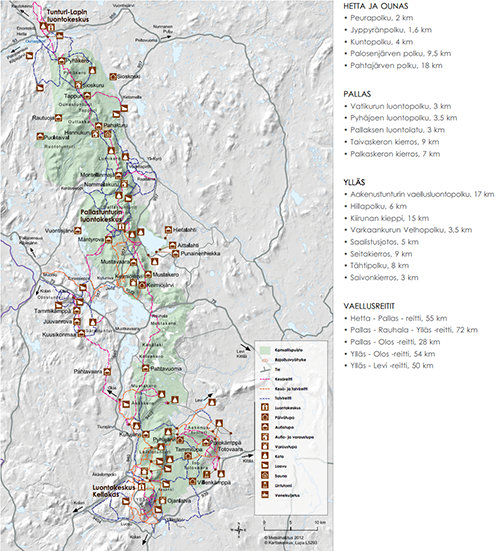 Pallas-Yllästunturi National Park was created around easily found and used for accommodation, catering and other services network (www.luontoon.fi).
