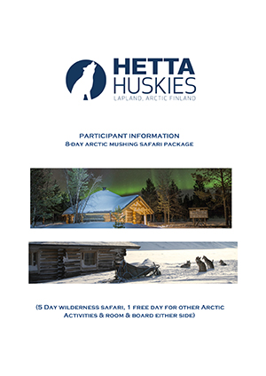 4a) Jos valitsette 5-päivän kiertueen, teillä on valinta pelkästä kiertue hinnasta ja meidän kaikkeen kuuluva 7-päiväinen (lauantaista perjantaihin) tai 8-päiväinen (lauantaista lauantaihin) paketti johon kuuluu meno ja paluu kuljetukset Enontekiön lentokentältä sekä majoituksen ja täysihoidon päivä ennen safaria ja jälkeenpäin. 8-päivän pakettehin kuuluu myös vapaapäivän seudun tutustumiseen. Voimme järjestää kuljetukset Kittilän lentokentältä lisämaksulla.
